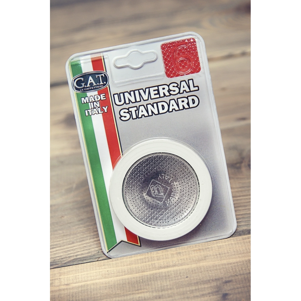 Zestaw uniwersalnych uszczelek gumowych i sitko do kawiarek włoskiej firmy GAT produkującej we Włoszech jedne z najlepszych kawiarek.