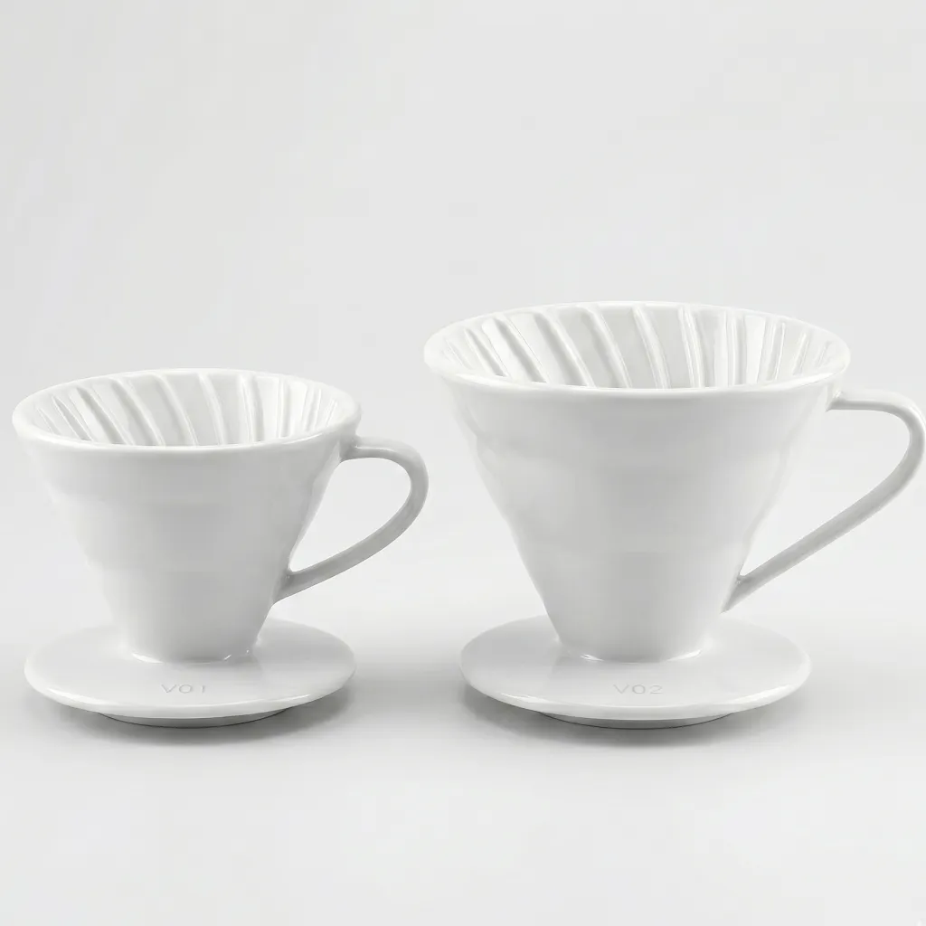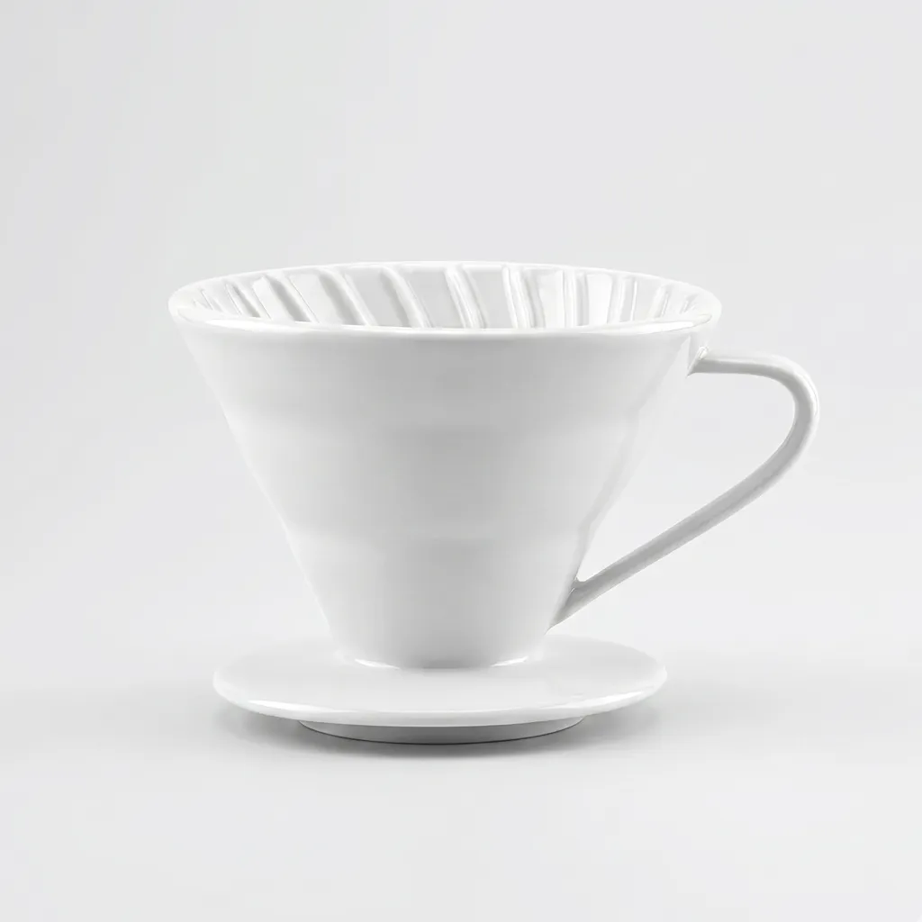 Dripper Tiamo V02 w kolorze białym to klasyczne urządzenie do alternatywnego parzenia kawy, które łączy w sobie minimalistyczną estetykę z najwyższą funkcjonalnością. Wykonany z wysokiej jakości ceramiki, pozwala na przygotowanie od 1 do 4 filiżanek (ok. 300-600 ml) naparu o czystym i głębokim profilu smakowym.