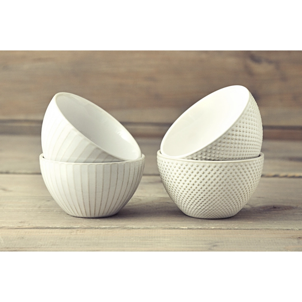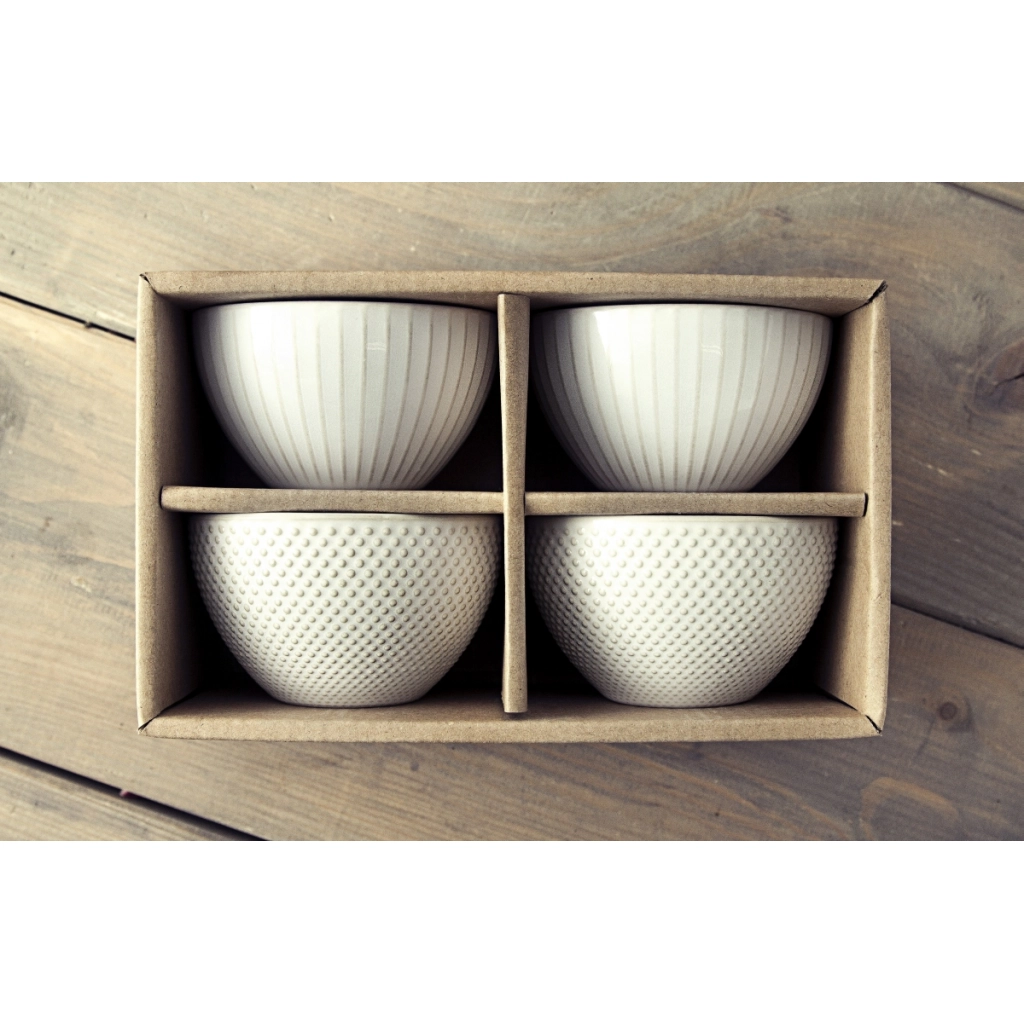 W zestawie znajdują się cztery czarki, po dwie w jednym wzorze. Klasyczny biały kolor nadaje im dodatkowego uroku. Czarki są dość pojemne, idealne do wypicia aromatycznej herbaty lub naparu z ziół.
