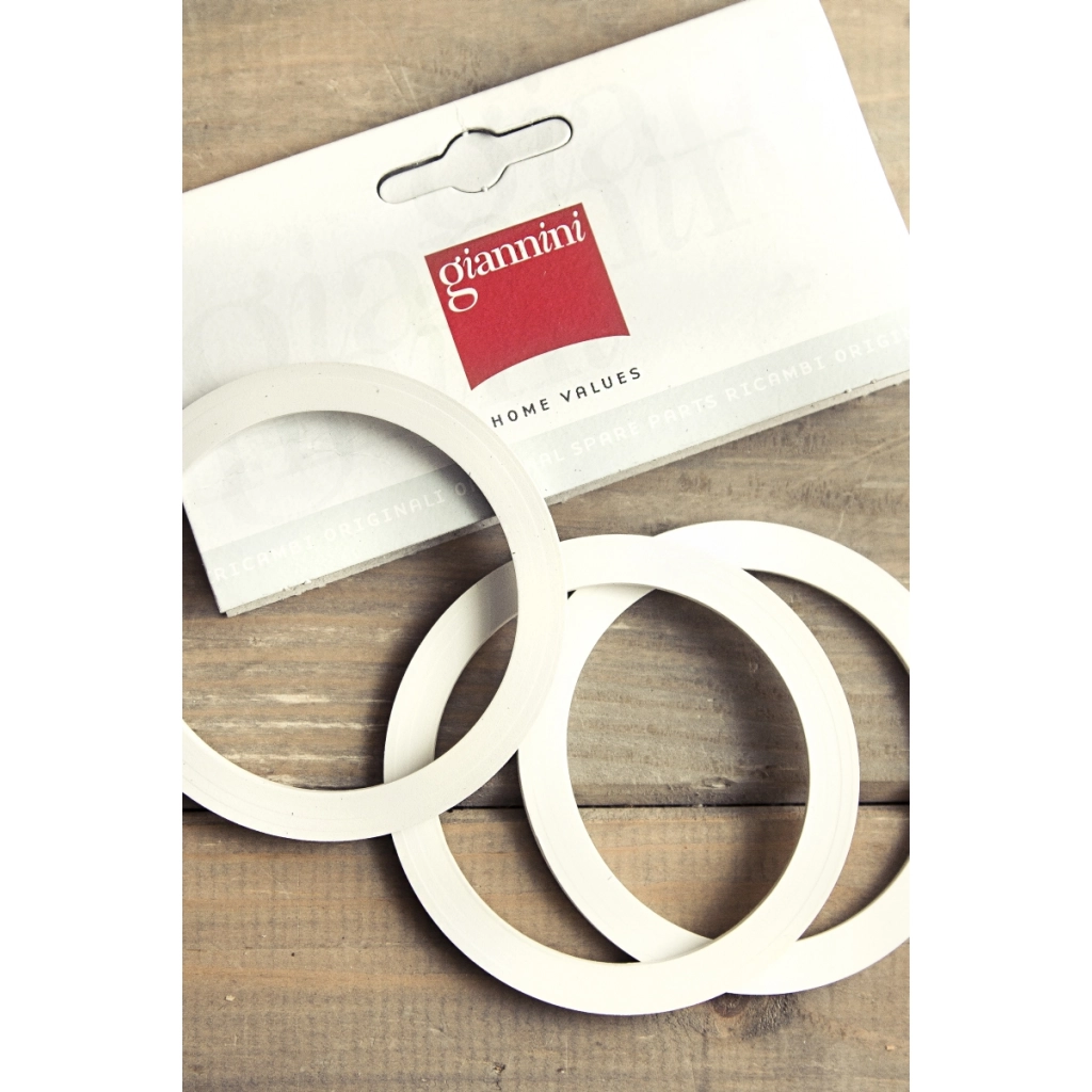 Zestaw zapasowych uszczelek gumowych do kawiarki Giannini Tua. Pasuje do kawiarki na 3 espresso. Pojedyncza uszczelka przy właściwym użytkowaniu wystarcza na 1-2 lata.