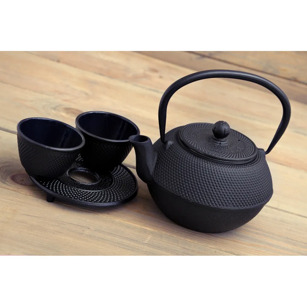 Podstawowym elementem jest Bredemeijer dzbanek żeliwny 1,1, do którego dobrana została podstawka Xilin oraz dwie czarki Xilin