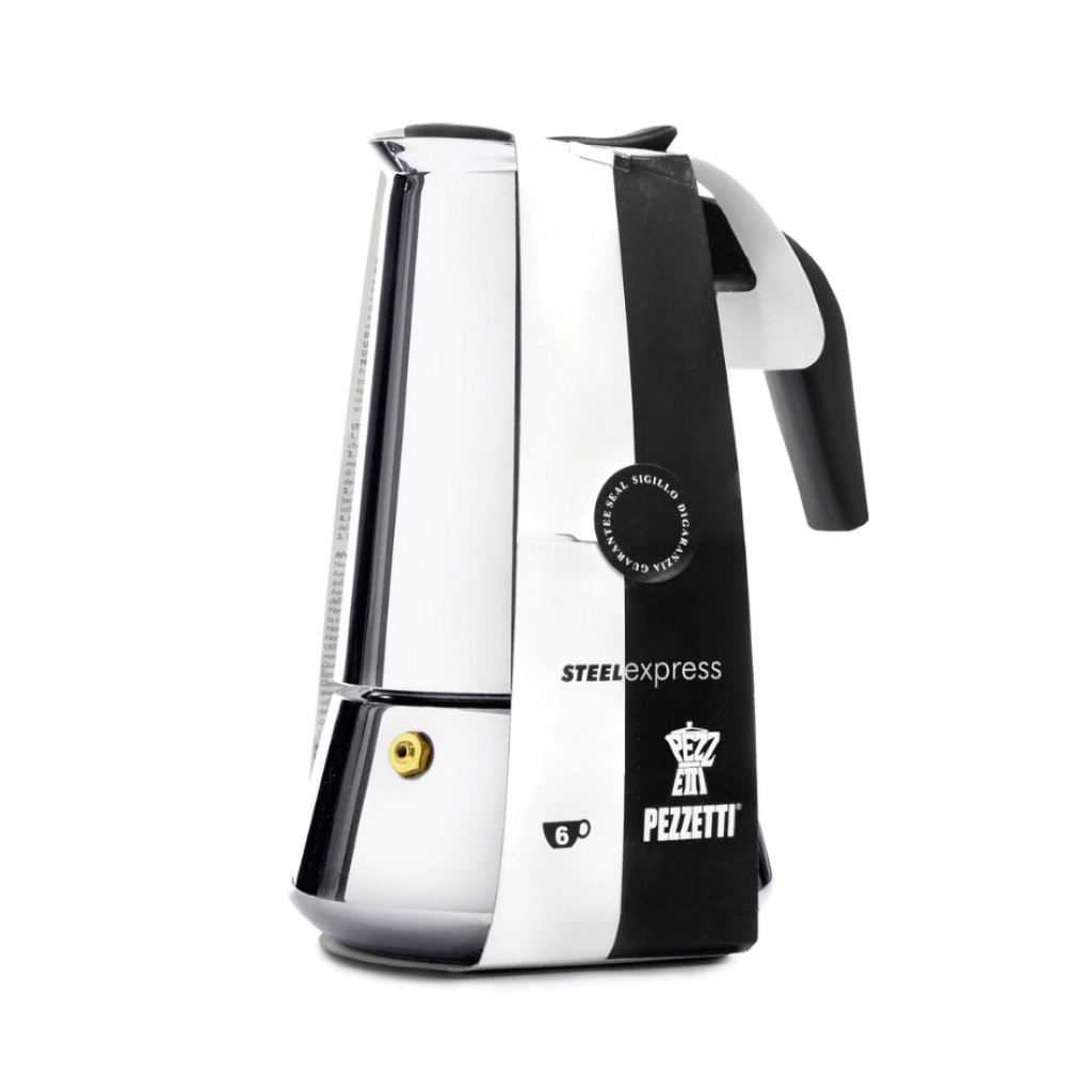 W związku z rosnącą popularnością kuchenek indukcyjnych i elektrycznych, konieczna była modernizacja tradycyjnej aluminiowej kawiarki. Tak powstała Pezzetti Steelexpress, która została wykonana ze stali nierdzewnej 18/10. Dolny zbiorniczek zaprojektowano z myślą o użytkowaniu na kuchenkach indukcyjnych i tym samym odpowiedzieć na zapotrzebowanie rynku. Design Pezzetti Steelexpress to połączenie nowoczesności i elegancji, która z pewnością oczaruje wszystkich kawoszy nie tylko wyglądem, ale też wygodą jej użytkowania.