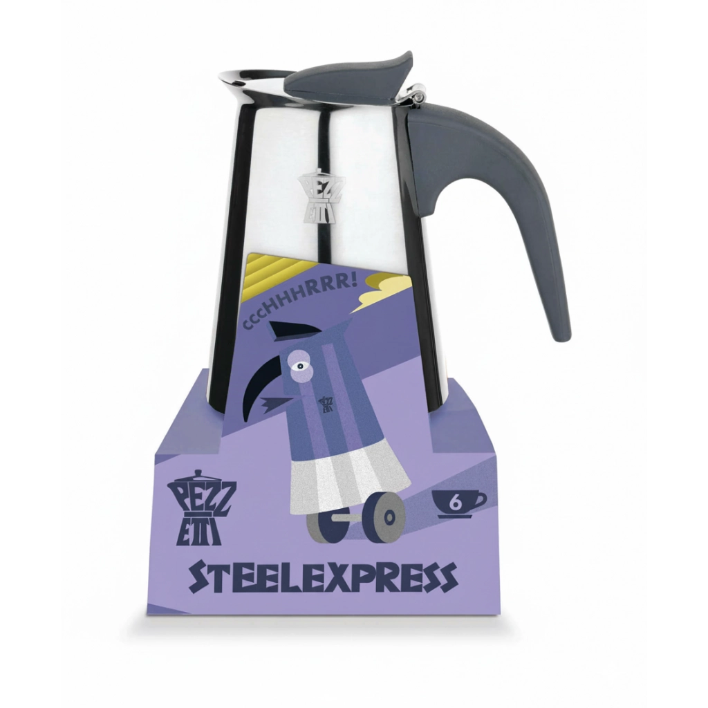 Pezzetti kawiarka Steelexpress ze stali nierdzewnej w kolorze błyszczącej stali. Pojemność 6 espresso.
