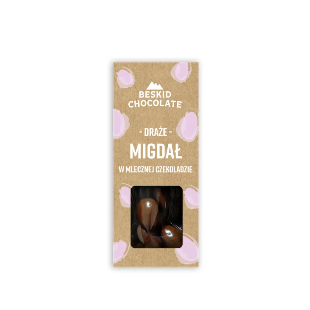Migdały w mlecznej czekoladzie to starannie wyselekcjonowane orzechy, dokładnie oczyszczone i delikatnie prażone, by zachować ich naturalny smak i chrupkość. Następnie są one zanurzane w kremowej czekoladzie mlecznej, tworząc niepowtarzalne połączenie smakowe.