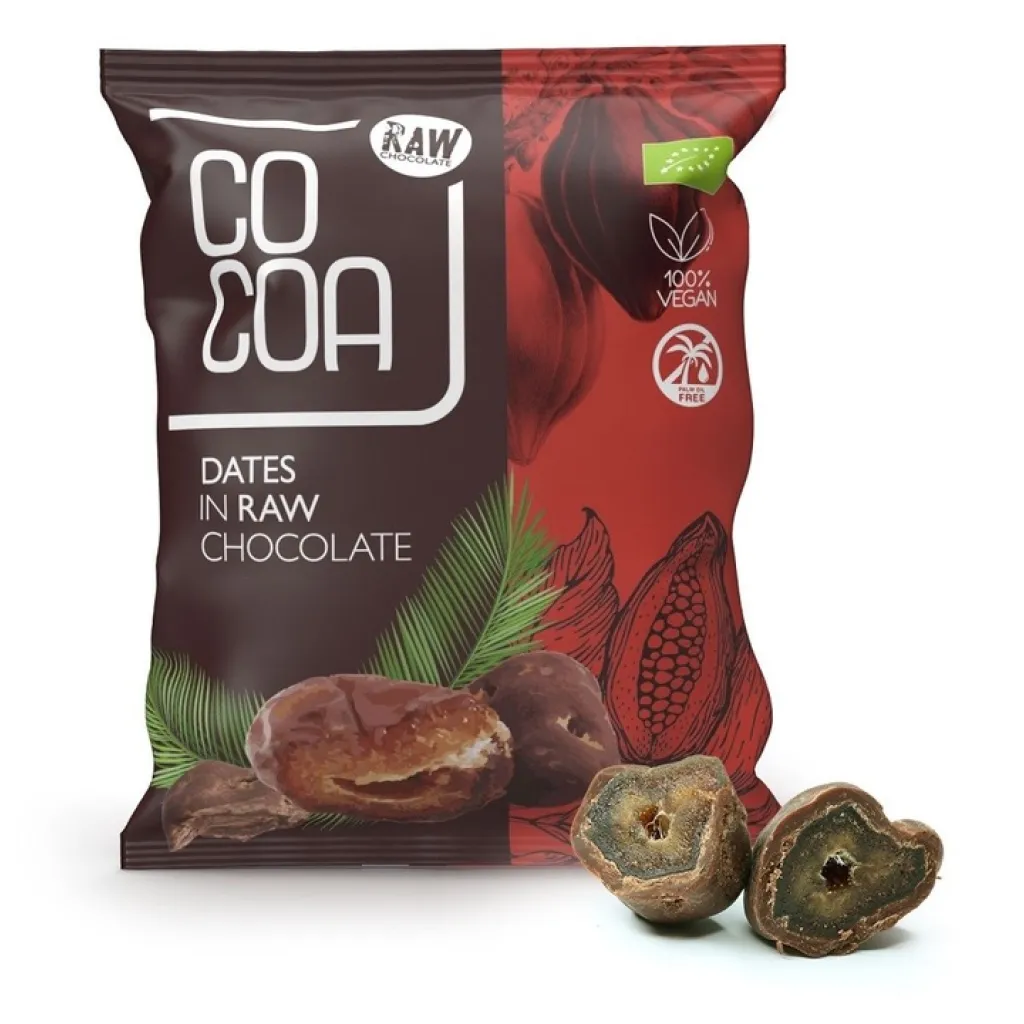 Daktyle w surowej czekoladzie Cocoa to wyjątkowe połączenie słodkiego, naturalnie miękko-soczystego daktyla z intensywnie czekoladową otoczką z nieprażonego ziarna kakaowca. Ciemna czekolada o charakterystycznie cytrusowym akcencie delikatnie łagodzi intensywną słodycz owocu i sprawia, że całość nabiera intensywnie kakaowej nuty.