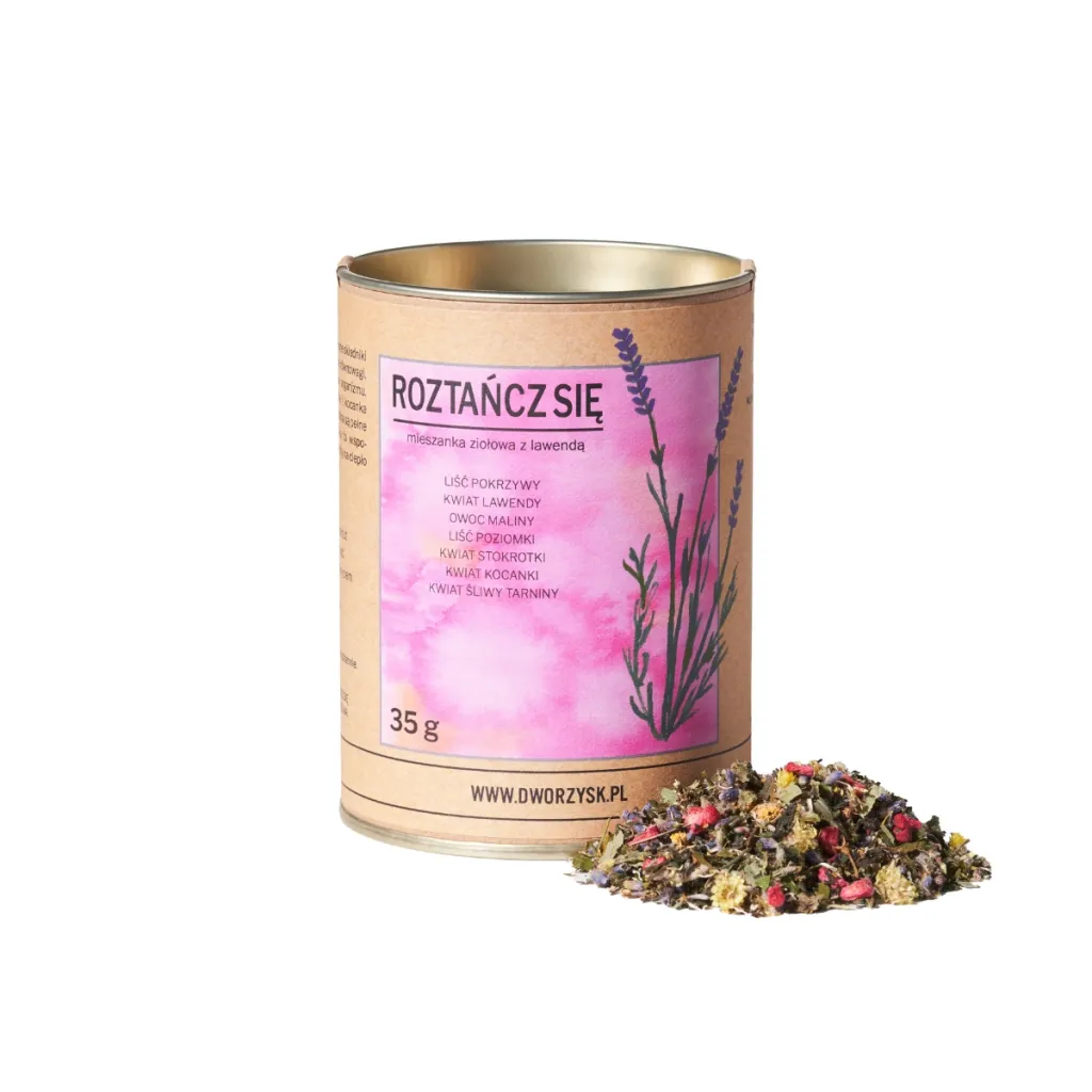 Roztańcz Się to lekka i radosna mieszanka ziół, która wnosi do codziennych chwil świeżość i pozytywną energię. W składzie znajdziesz liście pokrzywy, kwiatu lawendy, owoce maliny, liście poziomki oraz kwiaty stokrotki, kocanki i tarniny. Ta harmonijna kompozycja przywołuje ciepłe wspomnienia letnich dni, zamknięte w eleganckiej puszce pełnej naturalnych aromatów.