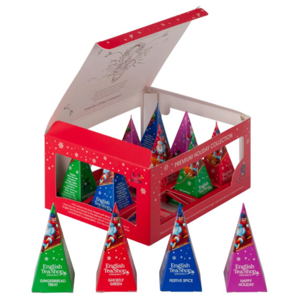 Zestaw New Red Prism to nie tylko uczta dla podniebienia, ale i dla oczu. Czerwone, geometryczne opakowanie w kształcie pryzmatu prezentuje się niezwykle elegancko i nowocześnie. To gotowy, stylowy prezent, który nie wymaga dodatkowej oprawy. Co więcej, English Tea Shop dba o planetę – piramidki są w pełni biodegradowalne, a kartonik nadaje się do recyklingu.