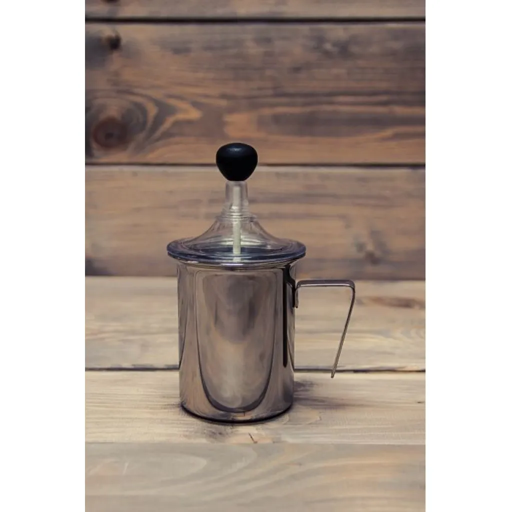 Idealny zestaw - Ubijak Combat, włoskiej firmy Frabosk do przyrządzenia perfekcyjnego cappuccino. Jak przygotować spienione mleko? Nic prostszego wystarczy wlać mleka do około 1/3 pojemności ubijaka. Następnie podgrzać mleko. Uwaga nie gotować! Później przez około 20-30 sekund ubijać ręcznie sitkiem, by wytworzyć sztywną mleczną pianę.